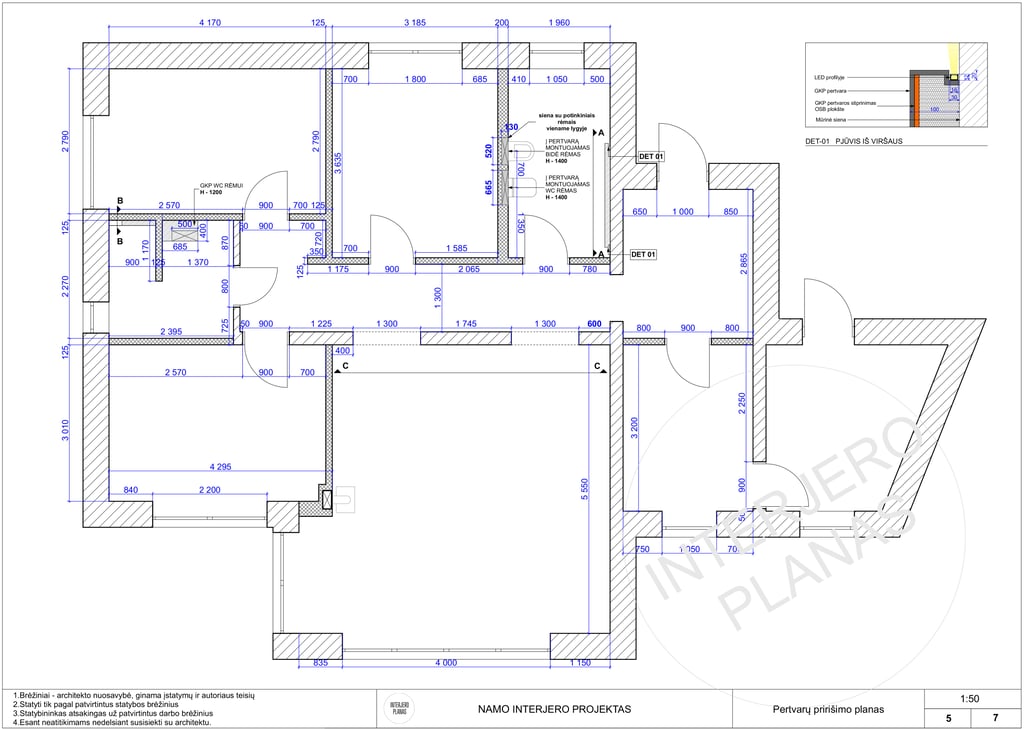 • Planas svarbus naudojant įleidžiamas grindjuostes, formuojant nestandartines duris sienose, projektuojant naujas erdves.