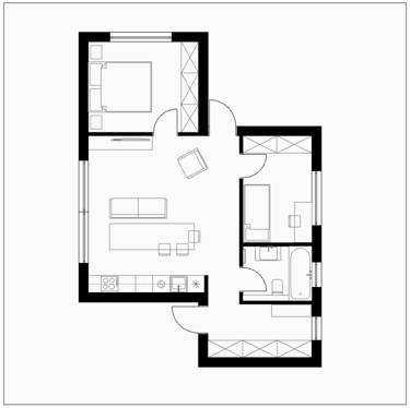 Galime pasiūlyti visus interjero dalies brėžinius, nuo baldų išdėstymo plano iki individualaus virtuvės projekto.