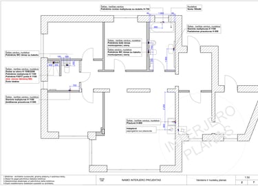 • Brėžiniui paruošti reikalingas baldų išdėstymo planas.